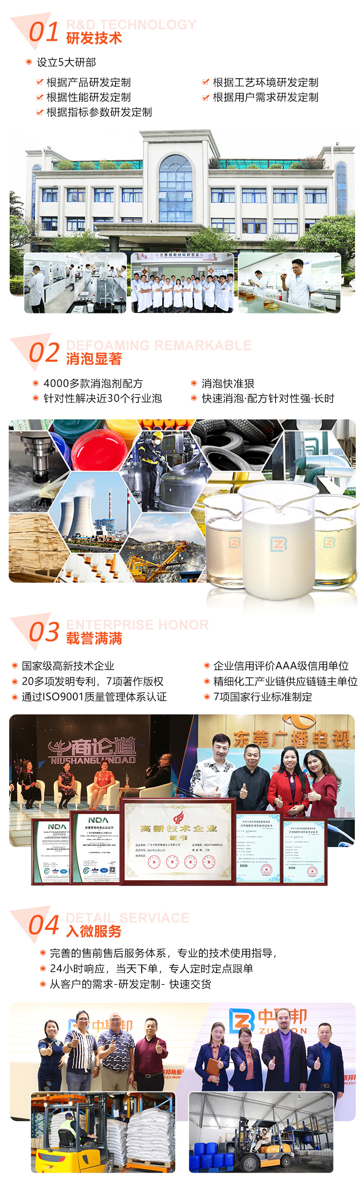 電廠脫硫消泡劑的選擇根據(jù)泡沫的特性,如果是瞬時有大量泡沫,可以選擇有機(jī)硅消泡劑;如果是持續(xù)穩(wěn)定起泡,可以選擇聚醚或是復(fù)合型消泡劑。根據(jù)漿液成分,如果含高氯離子或是重金屬,可以選擇耐腐蝕配方的消泡劑;如果是石膏漿液固含量高,可以選擇分散性好的...
